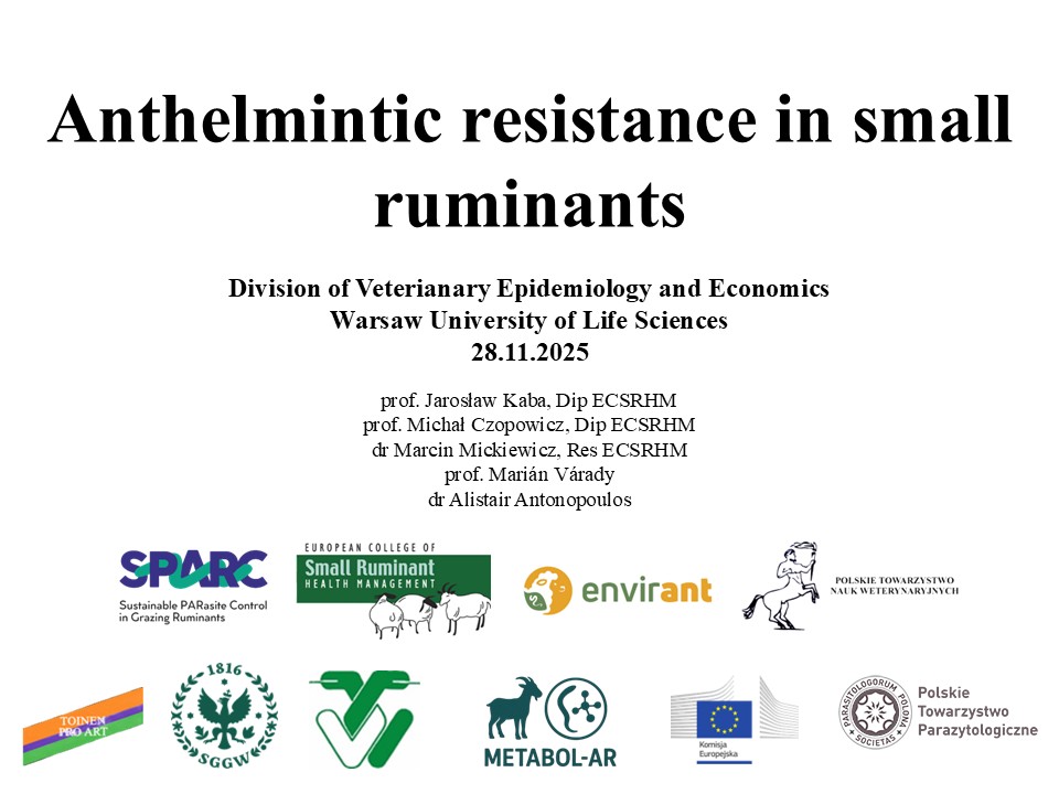 Zapraszamy do udziału w sympozjum online pt. „Anthelmintic resistance in small ruminants”, które odbędzie się 28.11.2025 w godzinach 13:00-17:00 (CET). W trakcie sympozjum zaprezentowane zostaną dwa wykłady: